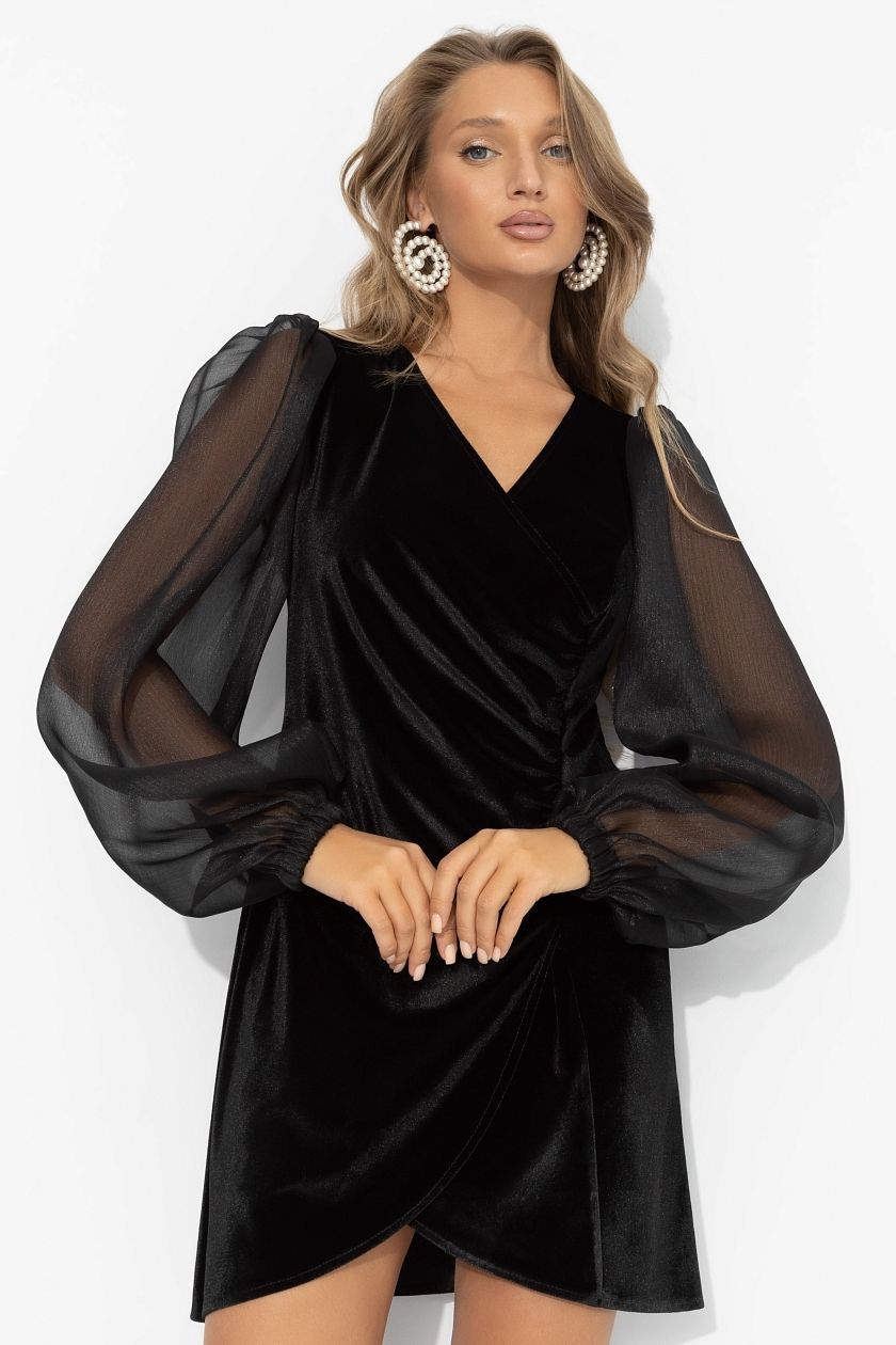 Платье чёрное из бархата с драпировкой
