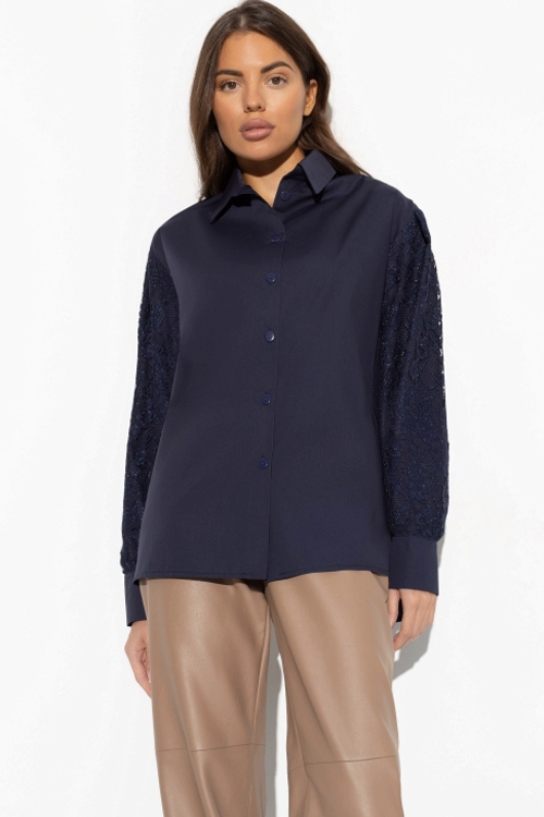 Рубашка синяя с кружевными рукавами