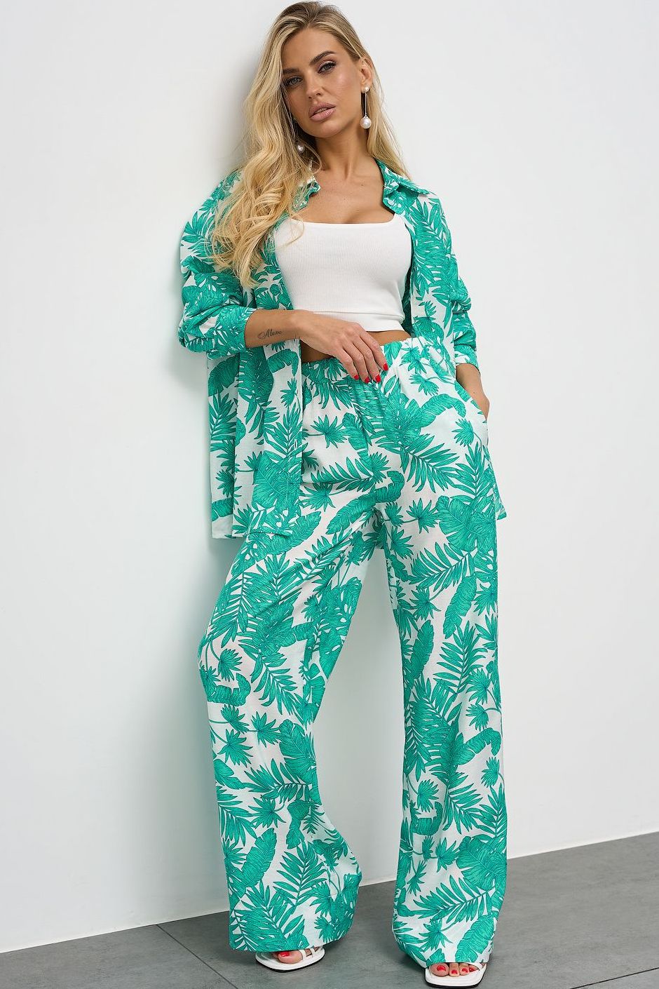 Брюки широкие летние бело-зелёного цвета с карманами от производителя Jetty, выполнены из хлопоковго полотна. Притачной пояс на резинке. Без подклада и застёжек. По низу широкая подгибка. Отличный выбор для создания повседневного образа.