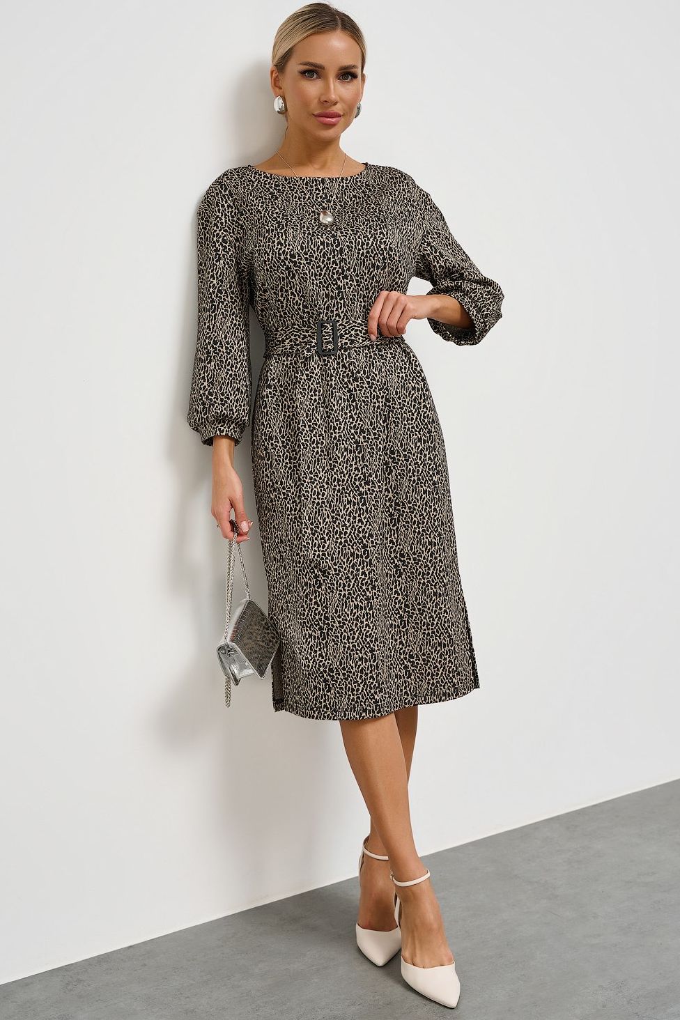 Платье трикотажное с поясом от компании Jetty. Модель полуприлегающего силуэта с круглым вырезом горловины. Укороченные рукава. В боковых швах - разрезы. Без застёжкт. Идеальный выбор для создания женственного образа.