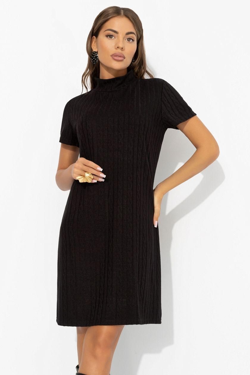Платье чёрное вязаное от компании Charutti. Модель прямого силуэта, воротник-стойка. Втачные короткие рукава. Без застёжки. Это Ваш отличный образ, в котором вы всегда чувствуете себя уверенно.