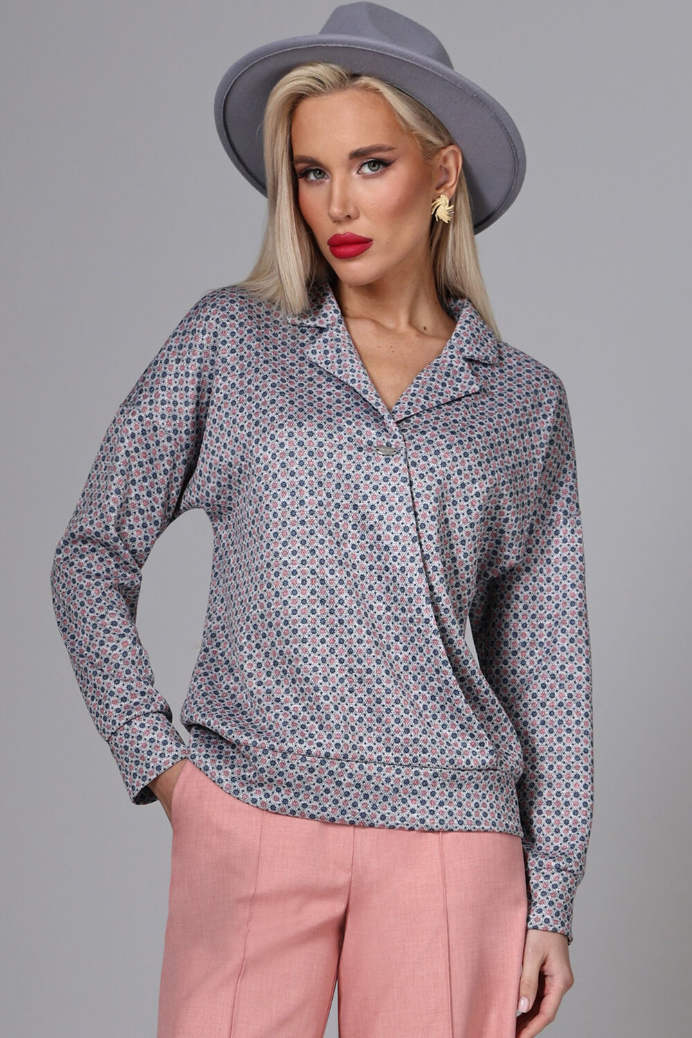 Блуза тёмно-голубая прямая