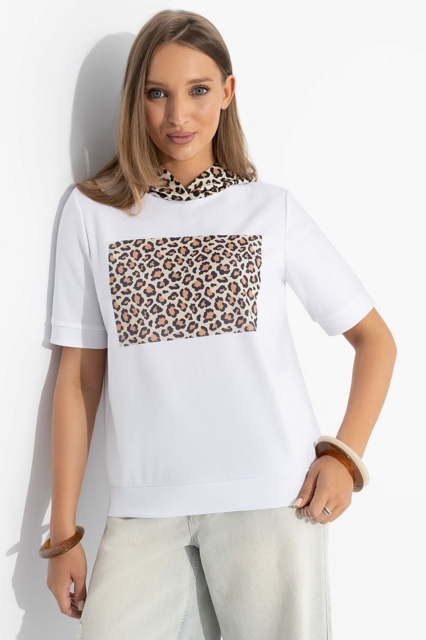 Футболка белая с капюшоном от компании Charutti. Модель прямого силуэта, выполнена из трикотажной ткани "милано". Короткие рукава. Идеальный выбор на каждый день.