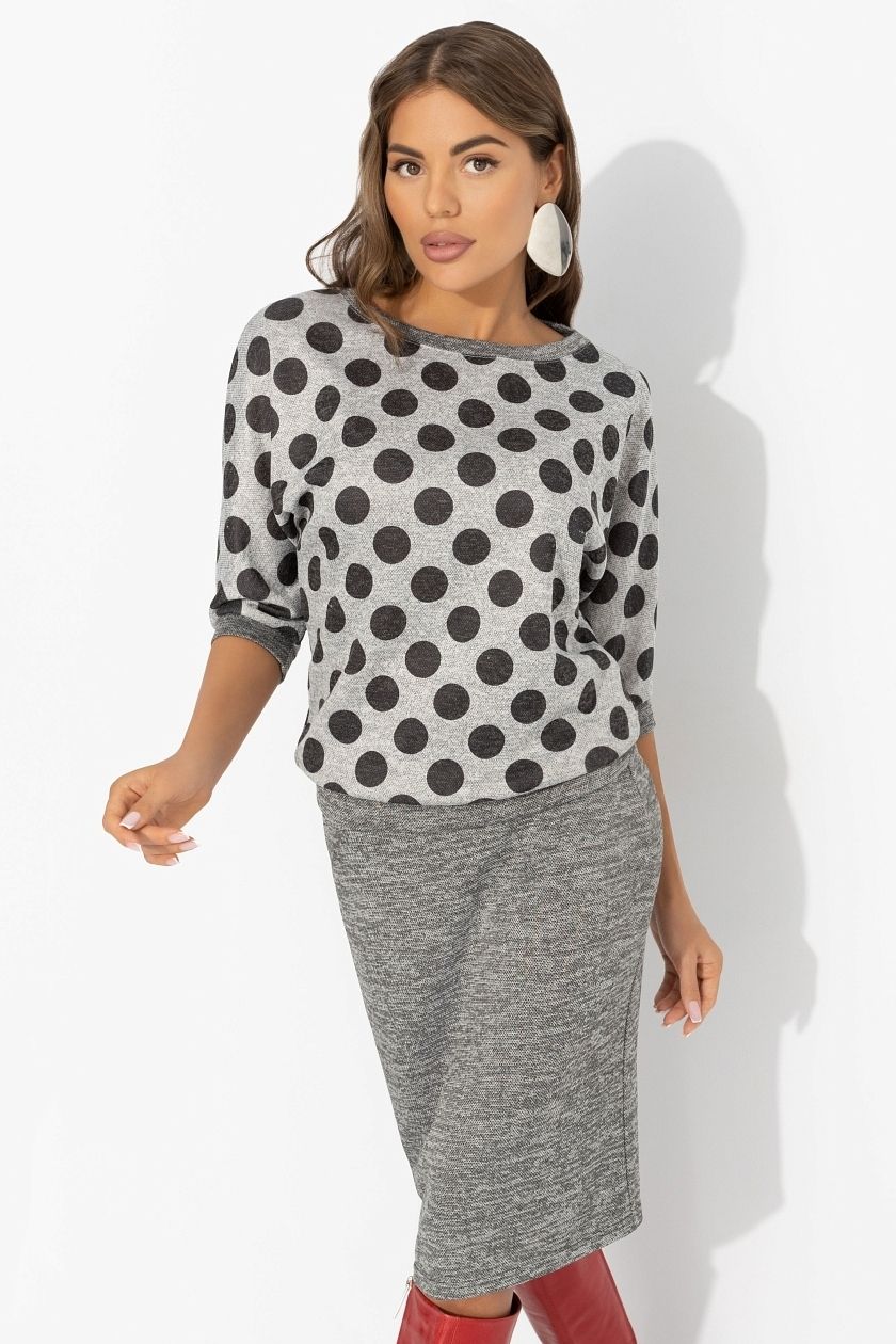 Костюм трикотажный серый с юбкой