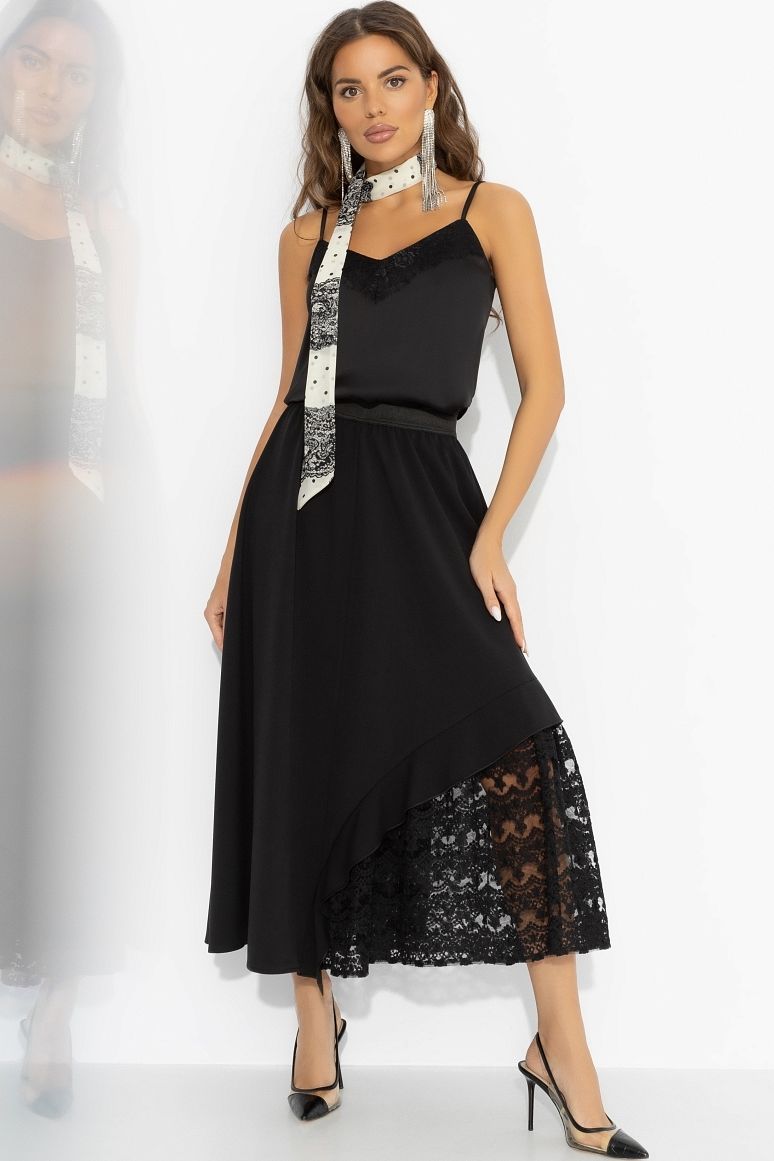 Юбка длинная чёрная для особенных моментов от компании Charutti, выполнена из костюмного полотна "бврби". Асимметричный подол мягко раскрывает вышитое кружево на сетке, создавая ощущение многослойности и глубины. Юбка легко сочетается с лаконичными топами и жакетами, превращая строгий образ в утончённый и запоминающийся. Пояс на резинке. Стильный вариант для создания женственного образа.